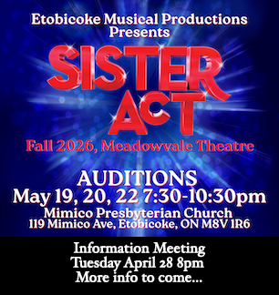 Auditions: May 19, 20, 22 / 7:30 - 10:30pm at Mimico Presbyterian Church / 119 Mimico Ave.